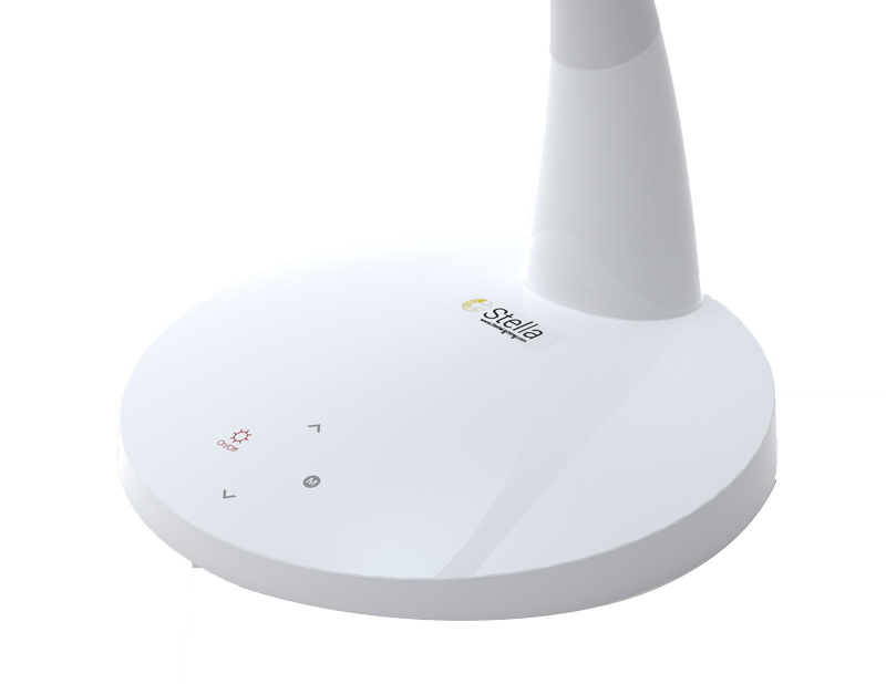 The Original Stella’s most recognizable feature is its Tri-Spectrum Technology which allows users to easily change their light from a warm spectrum similar to incandescent lights, to a natural white similar to sunlight, to a cool white similar to moonlight. 5-level dimming allows varying light intensities down to 10% of the maximum output. The segmented steel in the neck allows the perfect combination of stability and flexibility so the head can be easily maneuvered and held in almost any position. The Stella’s touch controls allow for easy use with no cumbersome switches. LED technology creates a brilliant bright light using an average 10 watts of power, producing little to no heat, and lasting well over 50,000 hours with no bulbs to replace..